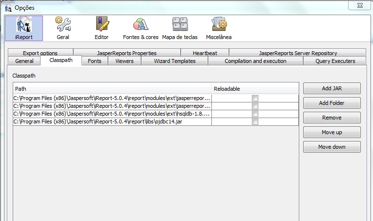 Os relatórios, geralmente, buscam informações em um banco de dados, que no nosso caso é o Oracle, e, para que o iReport acesse o banco, é necessário criar uma conexão (Datasource). O iReport não vem, por padrão, com o driver do Oracle instalado, mas este pode ser instalado da seguinte forma: baixe o arquivo ojdbc14.jar em http://www.oracle.com/technetwork/database/enterprise-edition/jdbc-10201-088211.html (esse driver serve para o Oracle 10g em diante. É necessário fazer o cadastro no site da Oracle, que é indolor e gratuito); no iReport, acesse o menu Ferramentas/opções, clique na aba "Classpath" e depois em "Add JAR". Selecione o arquivo baixado (ojdbc14.jar) e clique em OK. Pronto, o driver está instalado. O iReport já possui, por padrão, os drivers para MySql e PostgreSql.