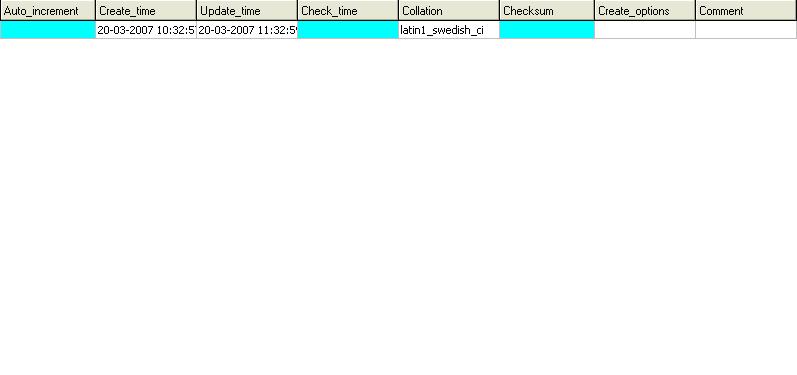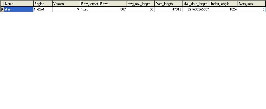 $df = "SHOW TABLE STATUS like " . "'$rowt[0]'" ;